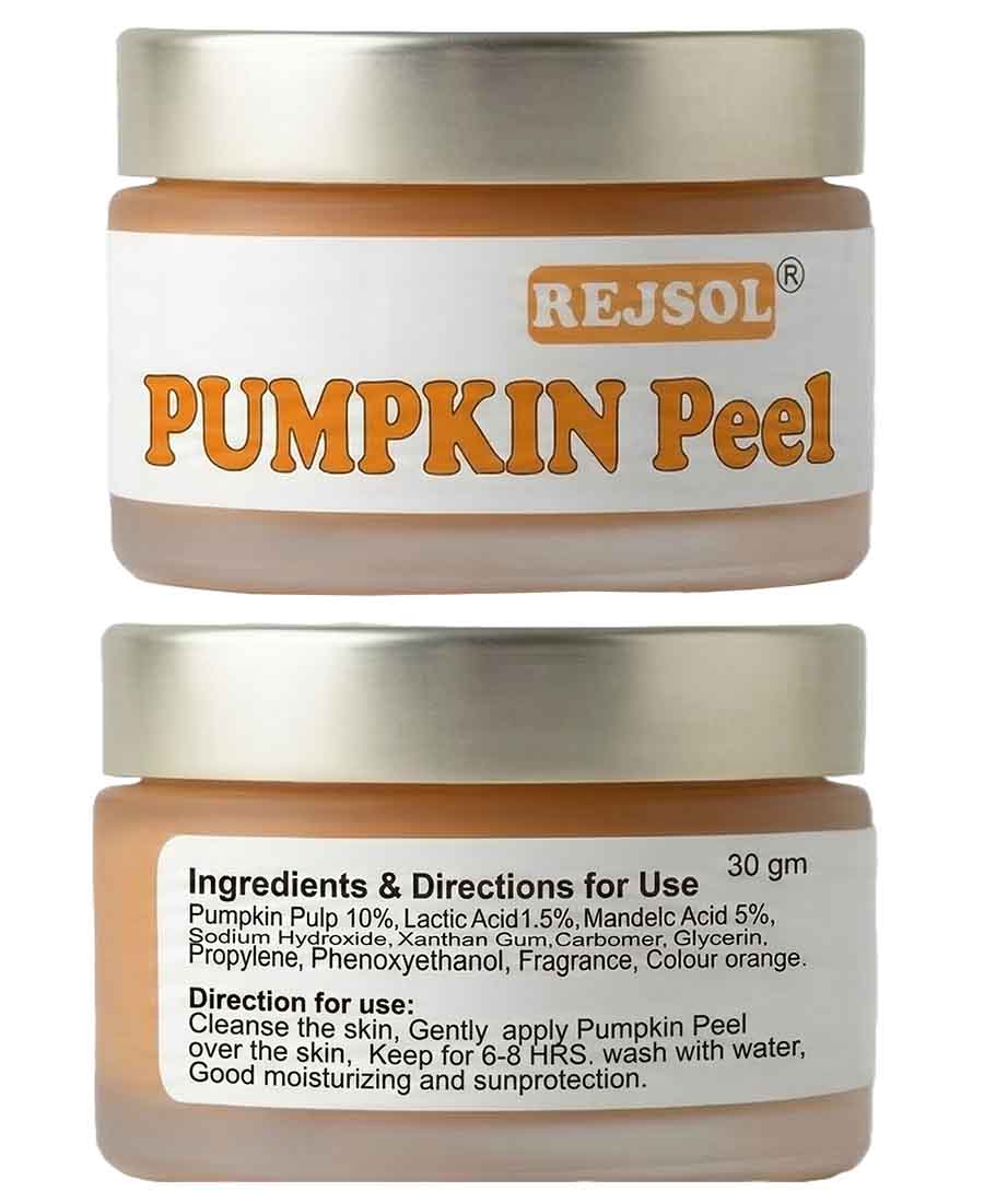 R122 Pumpkin Peel for Chemical Peeling. Kept for 8 hrs Professional Use 30gm Jar Pumpkin Pulp 10%, Glycerin 5%, Propylene Glycol 5%, Lactic Acid 1.5%, Mandelic Acid 5%, Licorice Root Extract 1%, Tea Tree Extract 1%