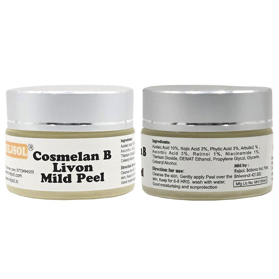 R164 Cosmelan B Livon MILD Peel for for Chemical Peeling. Kept for 8 hrs Professional Use 30ml Azelaic 10%, Kojic 3%, Phytic 3%, Arbutin 2%, Vit C 3%, Retinol 1%, Niacin 1%